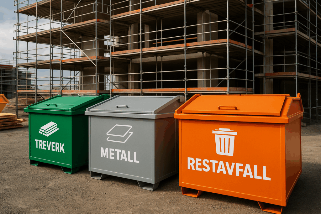 Vi tilbyr robuste og merkede avfallscontainere tilpasset kildesortering på byggeplass. Containerne leveres med tydelig skilting for treverk, metall, restavfall, plast og farlig avfall, og bidrar til å oppfylle krav i avfallsforskriften og BREEAM-NOR. Tjenesten inkluderer henting, vektregistrering og dokumentasjon for prosjektets miljøregnskap.